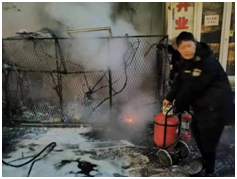 20點(diǎn)56分,監(jiān)控室負(fù)責(zé)人徐志民,保安班長孫永升,隊(duì)員馮玲瓏、孫永翔,家屬樓物業(yè)負(fù)責(zé)人劉兆彥及家屬樓值班人員組成的救火隊(duì)伍迅速趕到現(xiàn)場,由監(jiān)控室負(fù)責(zé)人徐志民單位現(xiàn)場指揮。由于現(xiàn)場火勢較大,近三米高的線路已經(jīng)被完全燒毀,為避免發(fā)生二次爆炸及更為嚴(yán)重的后果,徐志民指揮大家先用滅火器將火情進(jìn)行控制,并將液化氣罐從火場中搶救出來,避免了液化氣罐發(fā)生爆炸,此時(shí)張主任、王主任、宮臣、隊(duì)長肇興柱等人先后抵達(dá)火災(zāi)現(xiàn)場,對火災(zāi)撲救工作進(jìn)行了詳細(xì)的部署,而后眾人利用滅火器、消防栓等消防設(shè)施徹底將明火完全撲滅。與此同時(shí)消防車也及時(shí)趕到,并對火災(zāi)現(xiàn)場進(jìn)行了詳細(xì)確認(rèn),在確保沒有安全隱患后詢問了火災(zāi)發(fā)生的詳細(xì)情況,并對英勇救火的所有人表達(dá)敬意。沈陽廣播電視臺領(lǐng)導(dǎo)得知此事后十分重視,第一時(shí)間詢問火災(zāi)處置情況及保安隊(duì)員的安全情況,并對此次火災(zāi)應(yīng)急處置深表贊揚(yáng)。